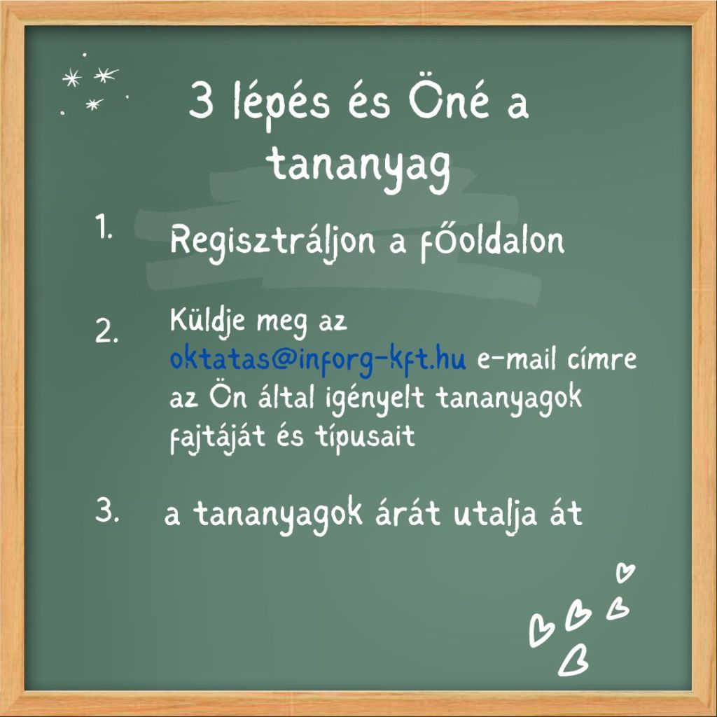 - lépés küldje meg az oktatas@inforg-kft.hu e-mail címre az Ön által igényelt tananyagok fajtáját és típusait.